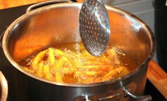 Lo stufato si prepara in modo molto semplice: bisogna tagliare la carne di maiale e il lardo a cubetti ugi. È più comodo farlo se la carne è congelata, quindi prima di iniziare a cucinare si possono mettere i prodotti in freezer per un po’. In una padella di ghisa o in un calderone, mettere il lardo, poi uno strato di carne e il sale. Ripetere l’operazione fino a esaurire gli ingredienti. Alla fine, coprire la pentola con un coperchio, accendere il fuoco basso e cuocere per circa due ore.