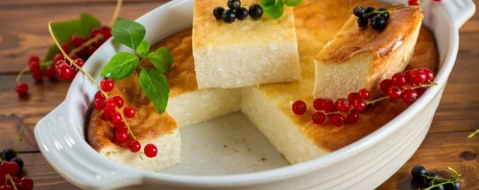 Sformato di cagliata con amido, cucinato senza farina e semolino, il risultato è leggero, tenero e arioso. Da servire a colazione o come dessert con panna acida, marmellata o miele.