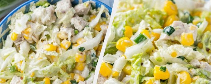L’insalata con cavolo, pollo e mais è facile da preparare.
